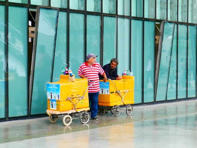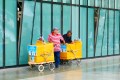 ‘Kinderwagen im Einsatz und alles schön bunt.’