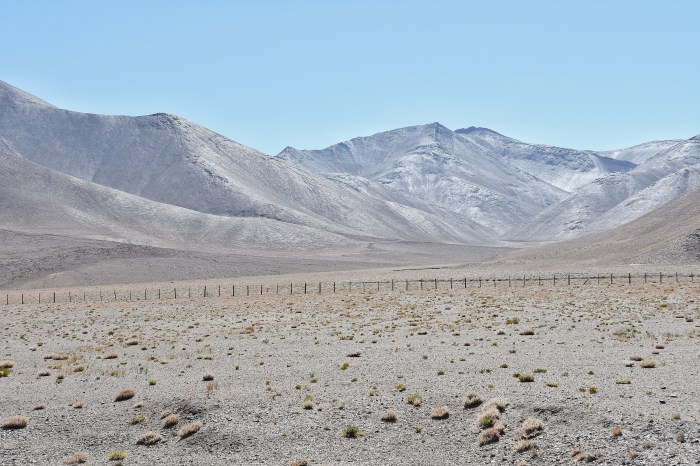 ‘entlang des Highways verläuft der chinesischer Grenzzaun, wobei viele Holzpfosten als Baumatarial missbraucht werden’